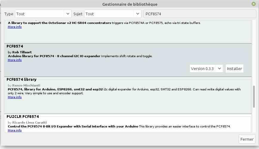 Le module PCF8574 (PCF8574T) est l'un des moyens les plus populaires d'étendre les E/S car il utilise le bus I2C qui ne nécessite que 2 broches sur le microcontrôleur. Il fournit 8 E/S numériques supplémentaires qui peuvent facilement être connectées en série jusqu'à 64.