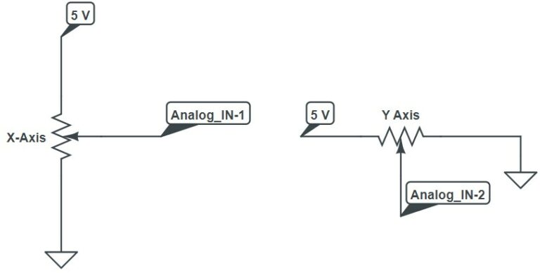 L'image ci-dessus montre une représentation électrique d'un joystick à deux axes. Vous pouvez également voir l’option de commutation.