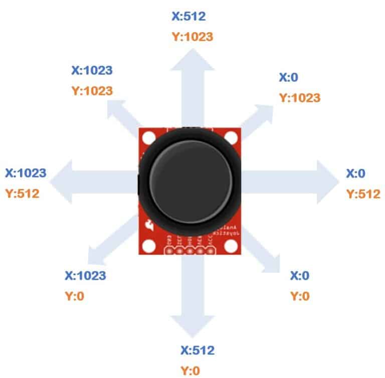 Par conséquent, les valeurs ADC pour les axes X et Y sont respectivement de 512 et 1024.