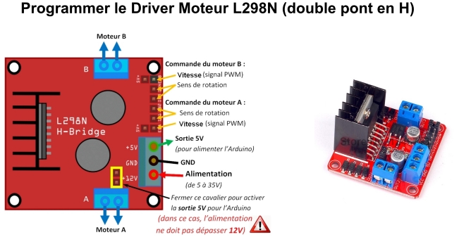 Dans la setup() section du code, toutes les broches de contrôle du moteur sont déclarées comme SORTIE numérique avec la fonction pinMode().