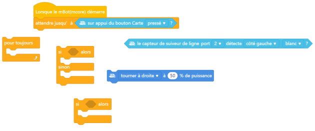 - Si le capteur de gauche commence à détecter du blanc, il tourne à droite.