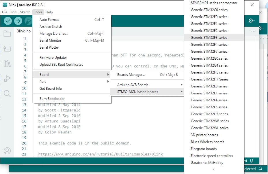 Premiers pas avec STM32 Nucleo dans Arduino IDE - LED clignotante