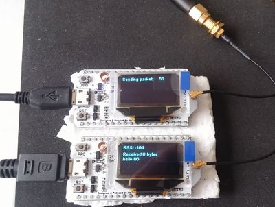 ... // LoRa API https://github.com/Heltec-Aaron-Lee/WiFi_Kit_series/blob/master/esp32/libraries/LoRa/API.md // LoRaWAN Parameters #define BAND 868100000 //you can set band here directly,e.g. 868E6,915E6 #define PABOOST false #define TXPOWER 14 #define SPREADING_FACTOR 12 #define BANDWIDTH 125000 #define CODING_RATE 5 #define PREAMBLE_LENGTH 8 #define SYNC_WORD 0x34 void configForLoRaWAN() { LoRa.setTxPower(TXPOWER); LoRa.setSpreadingFactor(SPREADING_FACTOR); LoRa.setSignalBandwidth(BANDWIDTH); LoRa.setCodingRate4(CODING_RATE); LoRa.setPreambleLength(PREAMBLE_LENGTH); LoRa.setSyncWord(SYNC_WORD); LoRa.crc(); } String loraCfg = "Cfg:"; void displayLoRaConfig(int x, int y){ loraCfg = "fr " + String(BAND/1000000, DEC) + " sf" + String(SPREADING_FACTOR, DEC) + " bw" + String(BANDWIDTH/1000, DEC) + " cr" + String(CODING_RATE, DEC) + "/4"; display.drawString(x, y, loraCfg); loraCfg = + " pr" + String(PREAMBLE_LENGTH, DEC) + " pw" + String(TXPOWER, DEC) + " sw" + String(SYNC_WORD, HEX) ; display.drawString(x, y+10, loraCfg); } ... // should be done before LoRa.begin configForLoRaWAN(); if (!LoRa.begin(BAND,PABOOST)) { display.drawString(0, 0, "Starting LoRa failed!"); display.display(); while (1); } displayLoRaConfig(0,20); display.drawString(0, 0, "LoRa Initial success!"); ... display.display(); ...