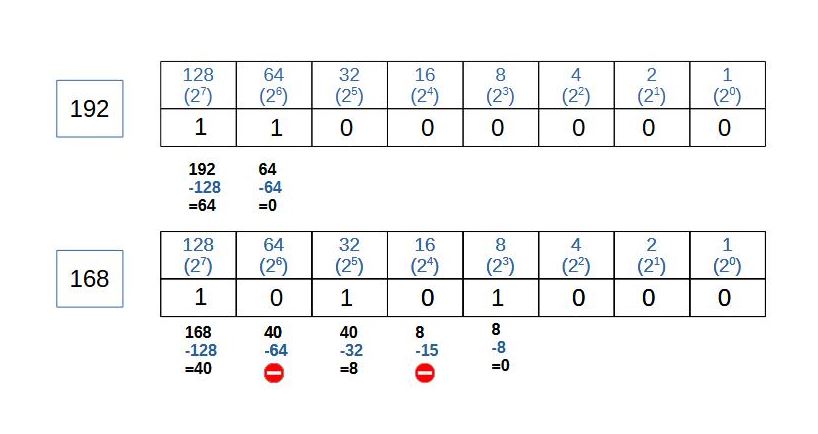 | 1100 0000 | 128+64+0 | 192 |