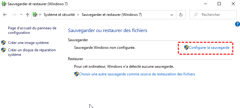 -2- Cliquez sur l'option Configurer la sauvegarde.