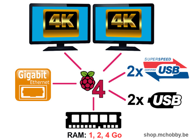 Voici une liste complète des améliorations apportées par le Raspberry Pi 4 par rapport à son prédécesseur, le Raspberry Pi 3 B +: