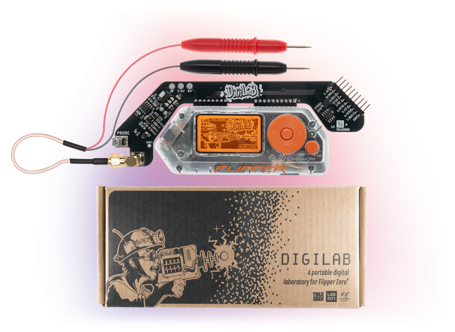Le DigiLab de Lab401 par tixlegeek est un accessoire Flipper Zero® qui introduit une nouvelle façon d'explorer l'électronique. Conçu pour être le premier outil que vous utilisez lorsque vous développez, déboguez, bricolez ou explorez l'électronique numérique.