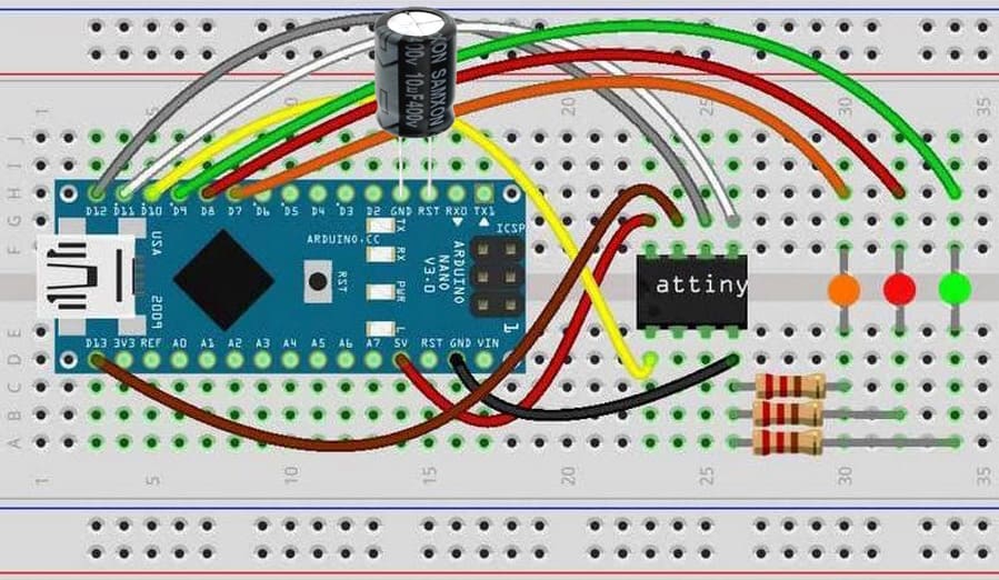 Pour programmer un ATtiny85 avec un arduino Nano