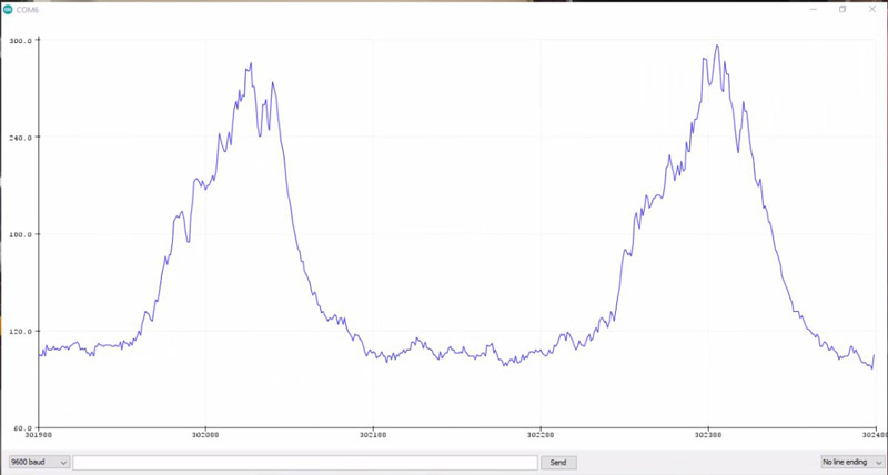 void setup() { Serial.begin(115200); } void loop() { Serial.println(analogRead(A0)); }
