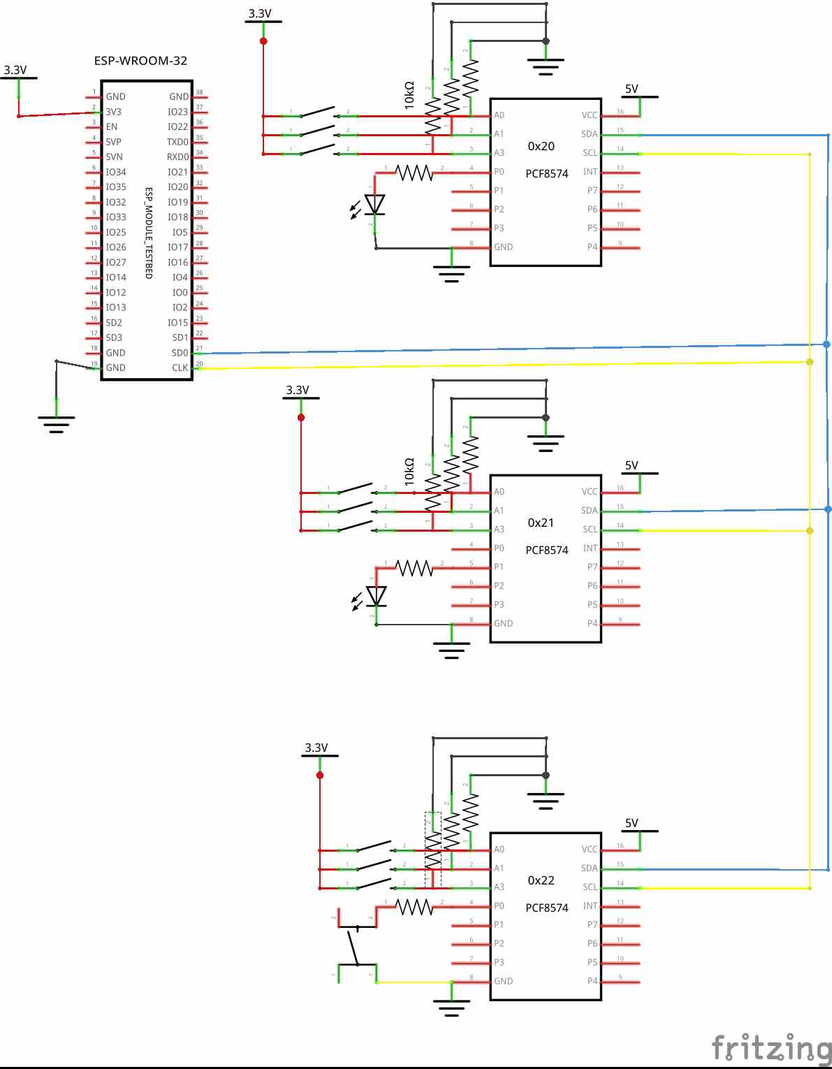 Les trois broches d'adresse matérielle permettent à huit de chaque appareil d'être sur le même bus I 2 C, il peut donc y avoir jusqu'à 16 de ces extenseurs d'E/S PCF8574/74A ensemble sur le même bus I2C, prenant en charge jusqu'à 128 I/Os.