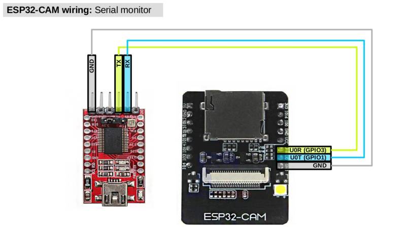 Vous êtes maintenant prêt à alimenter votre nouveau dispositif Tasmota ESP32-cam à l'aide d'une alimentation indépendante. Dans les sections suivantes, nous verrons comment surveiller l'appareil via l'adaptateur TTL, qui est facultatif, puis comment alimenter l'appareil et le configurer, qui sont tous deux nécessaires.