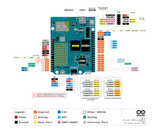 L'UNO Q est conçue pour un développement flexible, avec une prise en charge de premier ordre de l' Arduino App Lab et une compatibilité avec la dernière version de l'IDE Arduino 2.0+ .