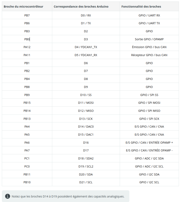 La carte UNO Q possède 47 broches numériques contrôlées par le microcontrôleur STM32 , dont 22 sont accessibles via le connecteur de type UNO