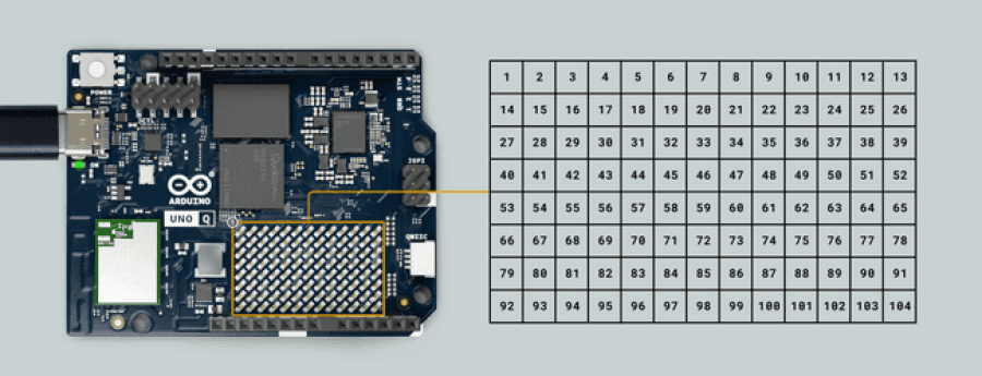 L'une des principales caractéristiques de la carte est une matrice de LED bleues 8×13 gérée par le microcontrôleur STM32 de l'UNO Q.
