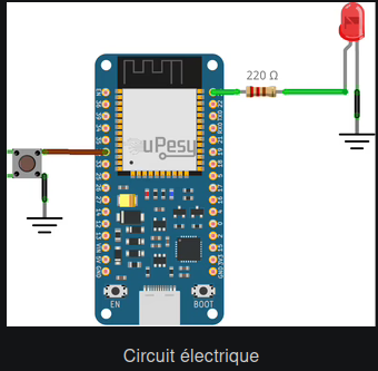 Le code ci-dessous affiche « Boutton pressé » lorsqu’on presse sur un bouton relié au pin 33.