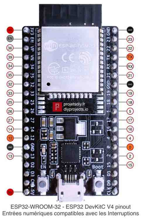 Broches du GPIO de l’ESP32 compatibles avec les interruptions