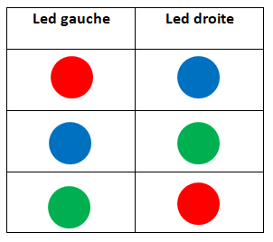 Lorsque le robot avance (100% de la puissance), ses leds sont vertes.