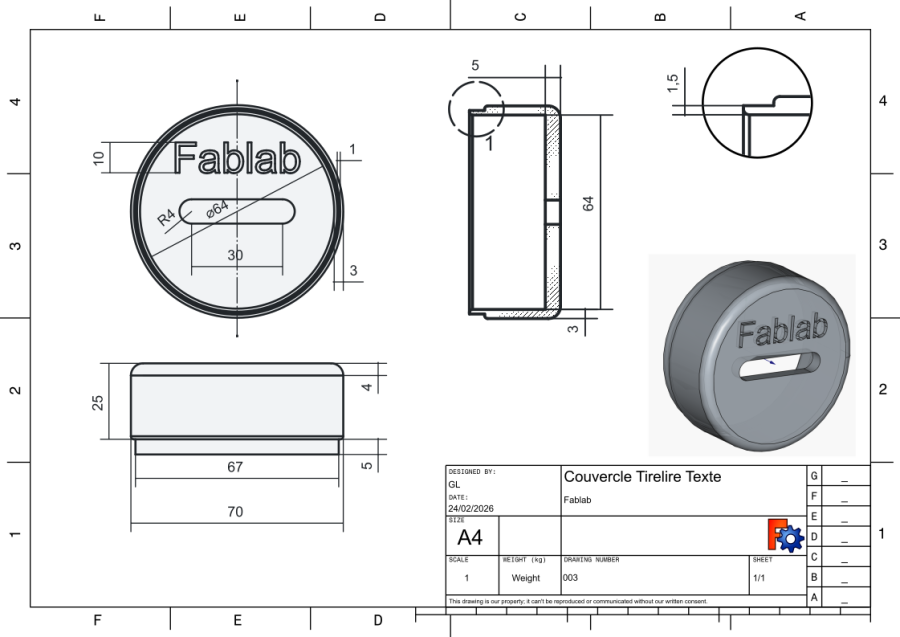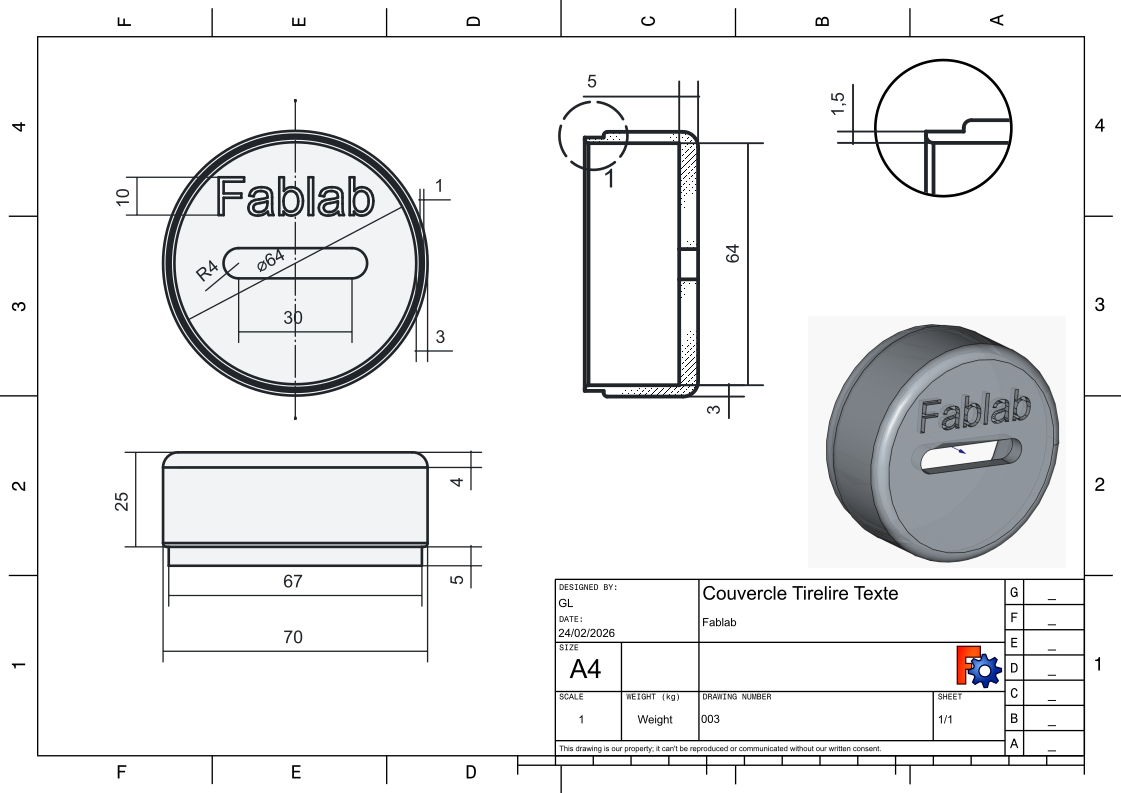 Tuto Video Freecad pour couvercle tirelire avec le trou et le texte Fablab