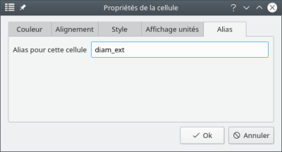- dans l’onglet Alias on nomme notre variable