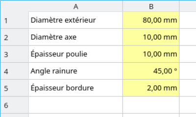 En faisant varier les variables dans la feuille de calcul, le modèle 3D de poulie obtenu est mis à jour automatiquement.