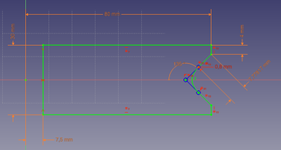 On utilise l’atelier PartDesign, le but est de dessiner une esquisse entièrement contrainte en utilisant les variables définies. On commence par dessiner une esquisse rapide avec la forme générale.