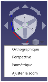 En haut à gauche de la zone graphique,se trouve le cube de navigation. Il permet de pivoter les objets selon différentes directions, ou encore d’afficher les objets selon un plan de projection particulier (Vue de face, de droite, de dessus…)