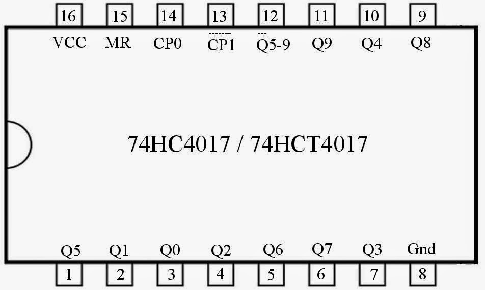 Broches 12 ⇒ sortie report pour brancher un autre 74HC4017 en serie