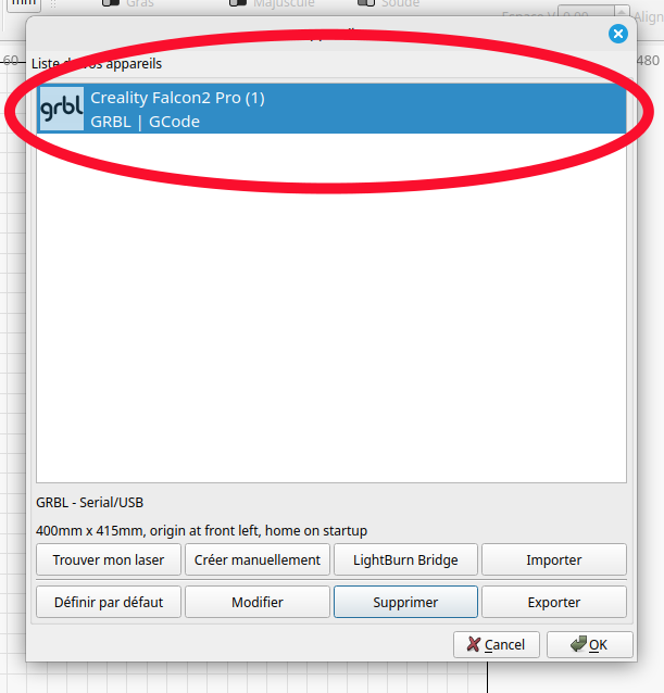 -4- Normalement vous devriez retrouver votre Creality Falcon2 Pro comme nouvel appareil