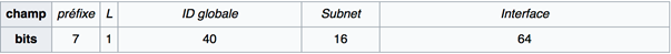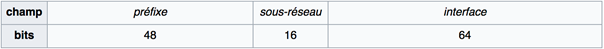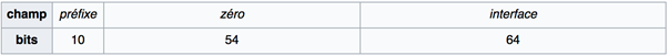 Toutes ces adresses, lorsqu’elles passent par la procédure de création automatique, on t généralement 8 octets représentant le réseau et 8 autres octets décrivant l’interface utilisée sur ce réseau.