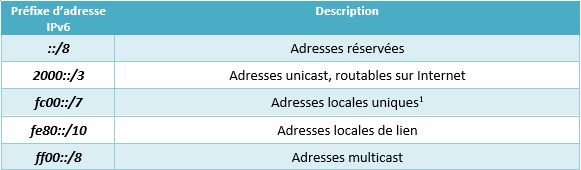 II. Les types d’adresses IPv6