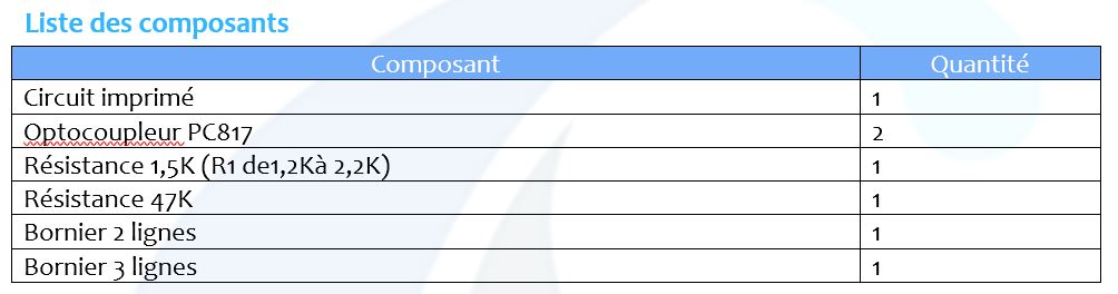 Comme je n'avais pas d'optocoupleur SFH620A, j'ai pris 2 PC817 en tête bèche.