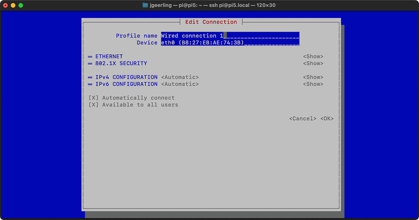 il existe une interface de console plus conviviale pour NetworkManager nmtui (qui devrait également être présente sur Pi OS) :