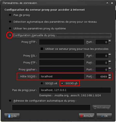 Soyez également conscient que certaines connexions peuvent échapper au proxy, en particulier les requêtes dns qui peuvent en dire long sur les sites visités. Pour remédier à cela il faut configurer la connexion Internet de manière globale (au niveau des paramètres système) et pas seulement au niveau du navigateur Internet.